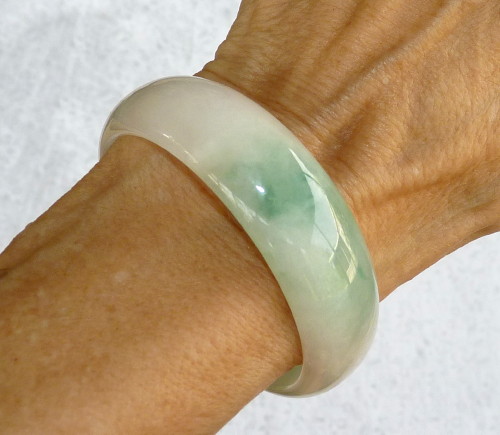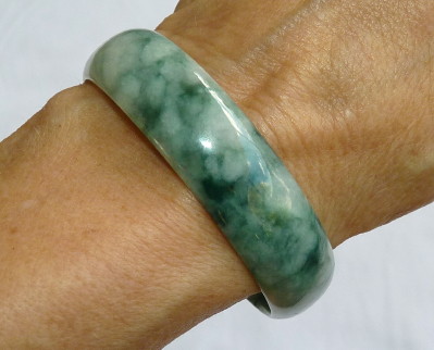 The Burmese jadeite bangle bracelet in the photo is item #JHBB576-2
